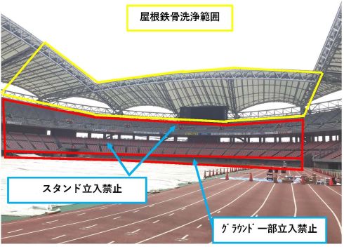 そのため、作業期間中はESスタンド及びグラウンドの一部エリアの立入禁止規制を行います。